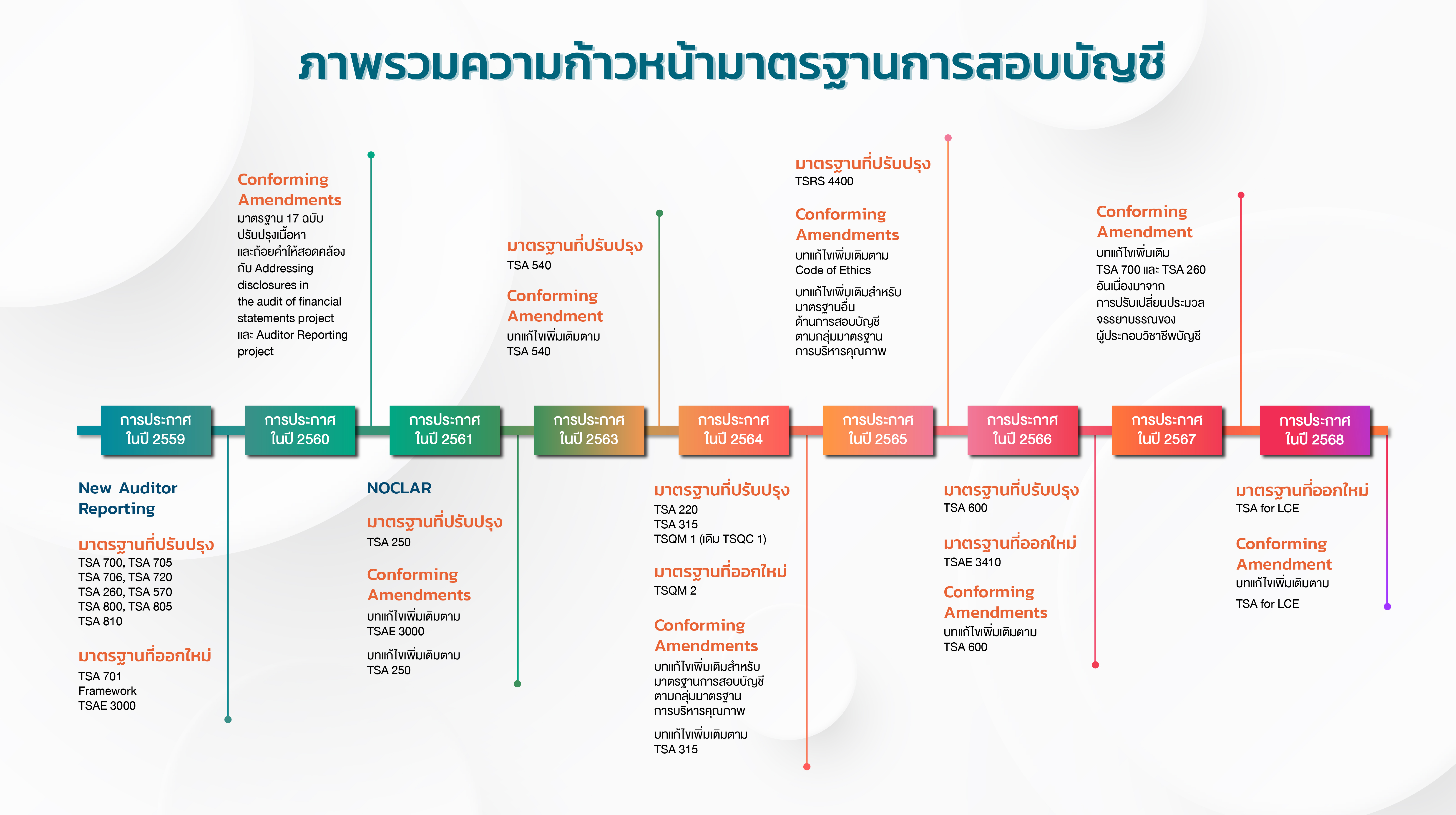 | 2568 | มาตรฐานการสอบบัญชี, งานสอบทาน, งานที่ให้ความเชื่อมั่น, งานบริการเกี่ยวเนื่อง |